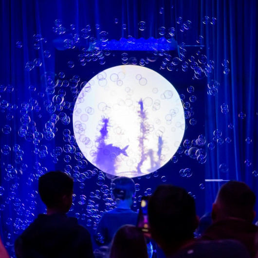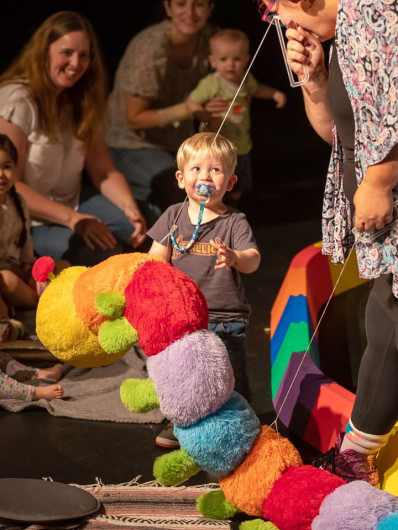 A sensory display of colour, sound, light and movement to spark joy and ignite wonder. Incorporating puppetry, clowning, bubbles, shadow play and much more.