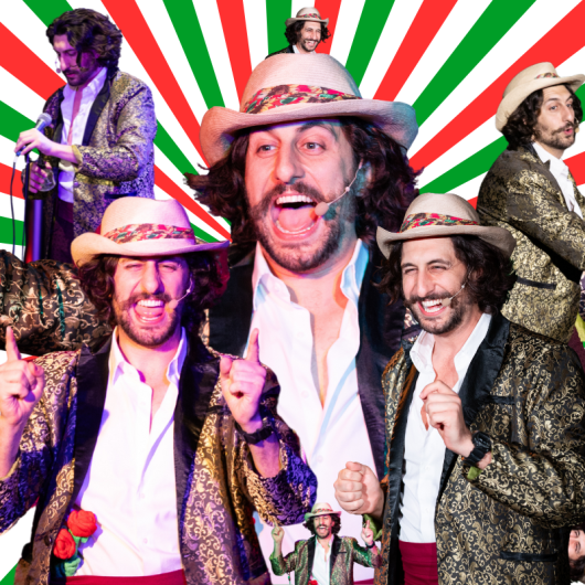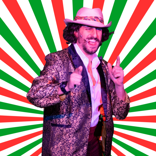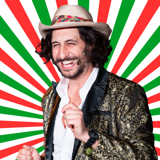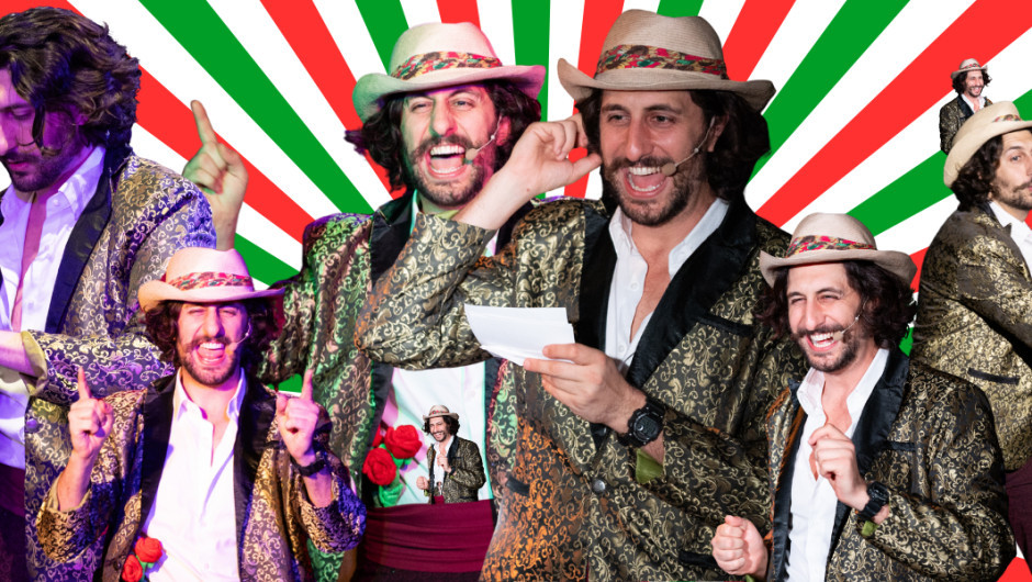 Ciao! My name is Giuseppe. I present a very silly game show with lots of games. It is fun, yes! It is exciting! Indeed! It is also a little bit ooh la la! Of course! It is with lots of funny and jokeful people from the Festival. They will make you laughing. Wow! Fun! Play!