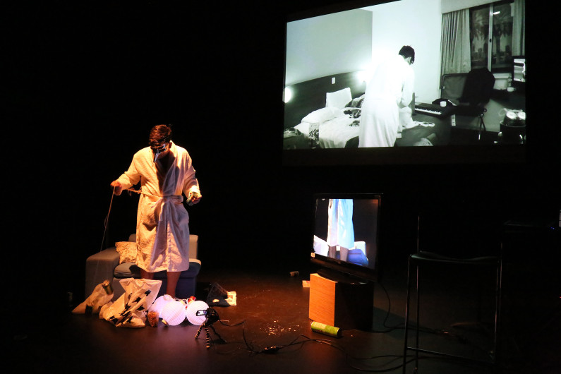 ‘The audience followed Scatterman as he talked to himself, gesticulating and staggering around a couch or playing a prepared piano while opening one beer can after another. Uncouth antics were contrasted by candid images of his family’. Le Scatterman addresses ‘the self-defeating idea of seeking the perfect life: the perfect husband, mother, child, society or artist’. Cool Perth Nights