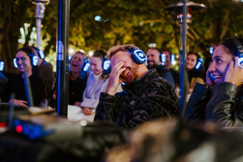 Putting an entertaining spin on a traditional comedy show, it's an experience much like a silent disco in which guests can enjoy gags, jokes, banter and zinging one-liners through headphones; spontaneously breaking out into laughter in response to what seems like nothing at all.
