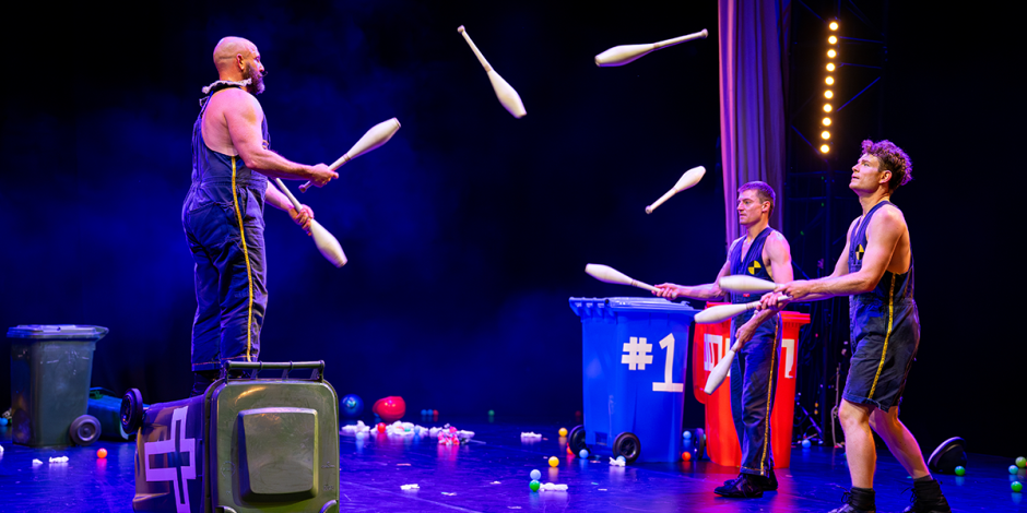“What kids and adults so readily enjoy is the adept, unadulterated mischief.” (★★★★★, The Times, UK).. Expect jaw-dropping acrobatics, hilarious juggling and the most action-packed wheelie bins you've ever seen.
