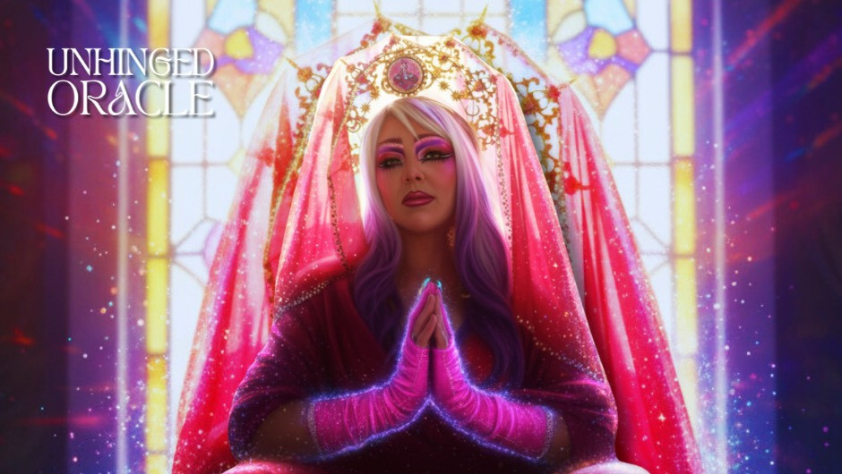 Unhinged Oracle is a live comedy experience, not a registered spiritual institution. Joining her community of like-minded individuals does not constitute conversion or meaningful spiritual membership in any way, shape, or form.
