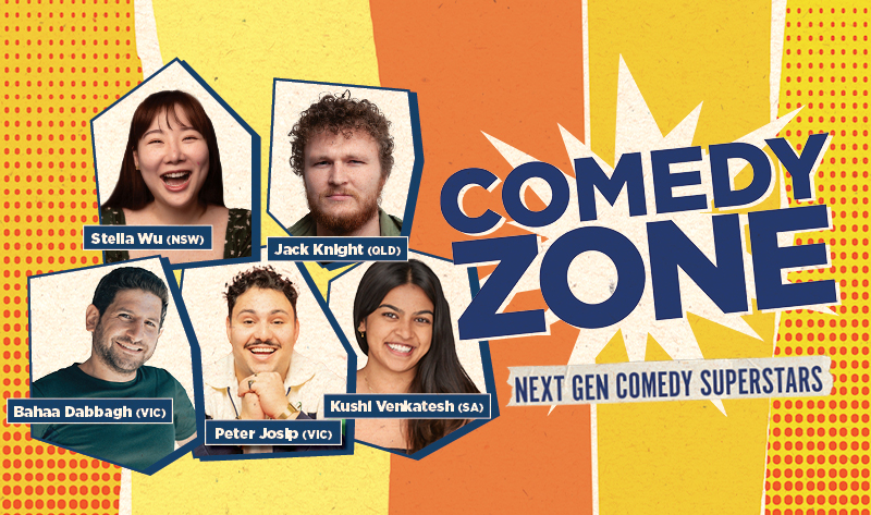 Each year Melbourne International Comedy Festival scours the country to discover the next wave of big names in Australian comedy – with a fresh line up of new faces coming together annually to form that year's Comedy Zone. Introducing… Peter Josip (VIC), Bahaa Dabbagh (VIC), Stella Wu (NSW), Jack Knight (QLD) and Kushi Venkatesh (SA).