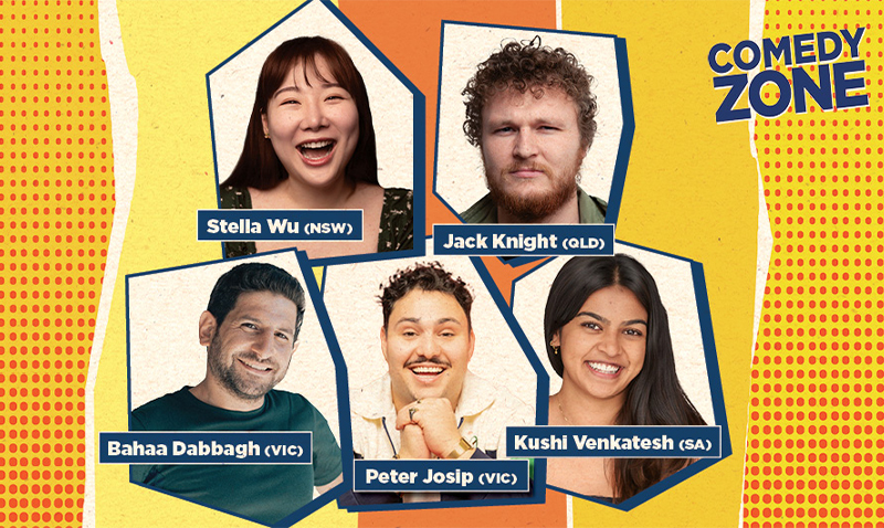 Introducing our 2026 Comedy Zoners: Peter Josip, Bahaa Dabbagh, Stella Wu, Jack Knight, and Kushi Venkatesh. For 26 years, Comedy Zone has been unearthing new comedy gold, and this year is no different! Get to know our cast and come along for a showcase of the electrifying next generation stand-up superstars!